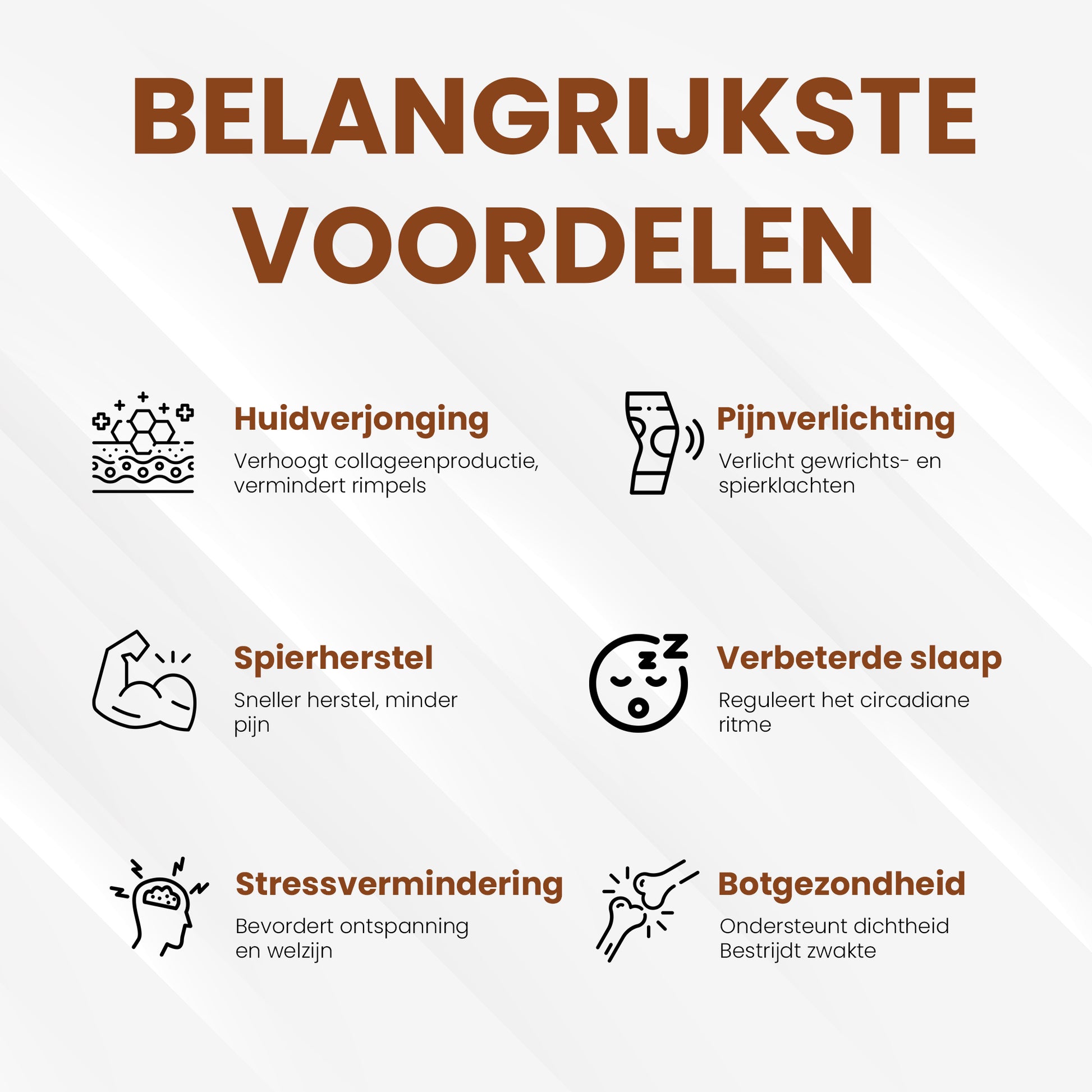 • Minder stress → diepe ontspanning door NIR-straling.